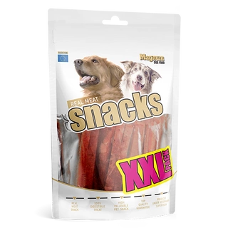 ( ilość produktów: 49 )Magnum jest czeską marką przekąsek dla psów, które są w 100% naturalne. Przysmaki Magnum stanowią idealną nagrodę i motywację oraz zdrowy suplement diety psów.Twórcy receptur przysmaków Magnum używają tylko świeżego mięsa. Przekąski powstają w drodze suszenia mięsa, skór i ścięgien, które stanowią atrakcyjne dla zwierząt uzupełnienie. Przysmaki i przegryzki Magnum produkowane są z wielu gatunków mięs, mają różną wielkość, kształt i rozmiar dlatego bez trudu można znaleźć produkt dla każdego psa. Opakowania mają uszczelniające zamknięcie typu quick-closing, dzięki czemu ich zawartość nie wysycha, a przekąska jest dłużej świeża i smaczna.Magnum jest dużo bardziej znaną marką na rynku niemieckim i brytyjskim niż w Polsce. Produkty czeskiego producenta zasługują jednak na uwagę ponieważ stanowią zdrowa i smaczną przekąskę, która smakuje zwierzakom. W rzeczywistości są to kawałki suszonego mięsa, więc podając je mamy pewność, że dajemy swemu pupilowi naturalny produkt bez dodatku konserwantów, soli czy barwników. Producent stosuje bowiem technologie suszenia, która jest wystarczającą metoda utrwalania świeżości mięsa znaną i stosowaną od wieków.