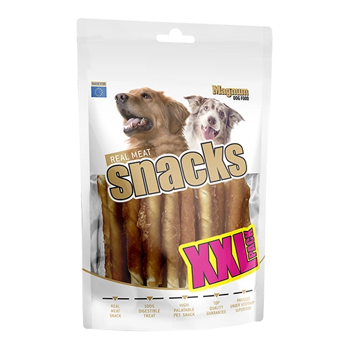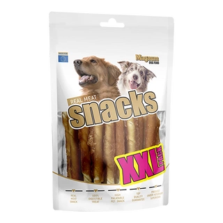 ( ilość produktów: 50 )Magnum jest czeską marką przekąsek dla psów, które są w 100% naturalne. Przysmaki Magnum stanowią idealną nagrodę i motywację oraz zdrowy suplement diety psów.Twórcy receptur przysmaków Magnum używają tylko świeżego mięsa. Przekąski powstają w drodze suszenia mięsa, skór i ścięgien, które stanowią atrakcyjne dla zwierząt uzupełnienie. Przysmaki i przegryzki Magnum produkowane są z wielu gatunków mięs, mają różną wielkość, kształt i rozmiar dlatego bez trudu można znaleźć produkt dla każdego psa. Opakowania mają uszczelniające zamknięcie typu quick-closing, dzięki czemu ich zawartość nie wysycha, a przekąska jest dłużej świeża i smaczna.Magnum jest dużo bardziej znaną marką na rynku niemieckim i brytyjskim niż w Polsce. Produkty czeskiego producenta zasługują jednak na uwagę ponieważ stanowią zdrowa i smaczną przekąskę, która smakuje zwierzakom. W rzeczywistości są to kawałki suszonego mięsa, więc podając je mamy pewność, że dajemy swemu pupilowi naturalny produkt bez dodatku konserwantów, soli czy barwników. Producent stosuje bowiem technologie suszenia, która jest wystarczającą metoda utrwalania świeżości mięsa znaną i stosowaną od wieków.