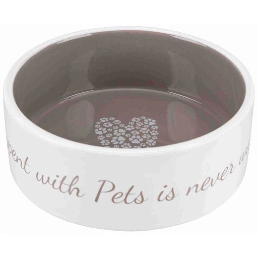 Trixie Miska, dla psa, ceramiczna, motyw roślinny, biała/taupe, 0,3 l/12 cm