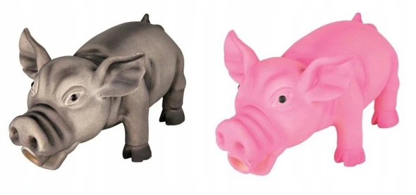 Zabawka ma w sobie piszczałkę, która imituje prawdziwy dźwięk świni.