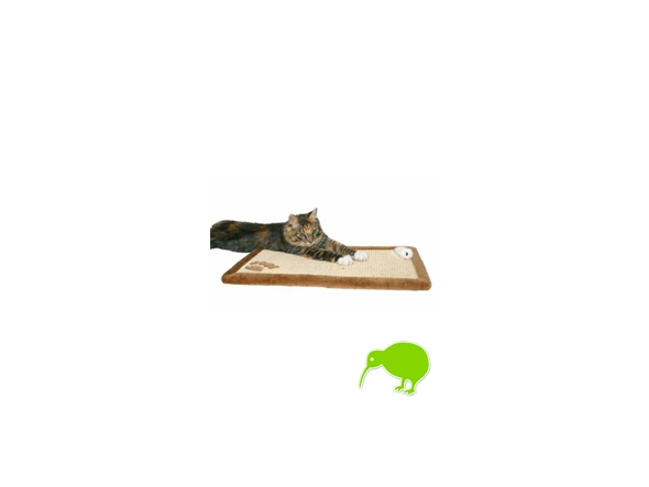 To bardzo atrakcyjna wizualnie mata do drapania dla kotów, wykonana z sizalu i miękkiego pluszu. Sizal jest idealnym materiałem do produkcji kocich drapaków, gdyż z jakiegoś powodu zwierzaki bardzo go lubią – może chodzi o zapach, albo wrażenia dotykowe? Do korzystania zachęca w tym przypadku dodatkowo przyczepiona do niego piłeczka.