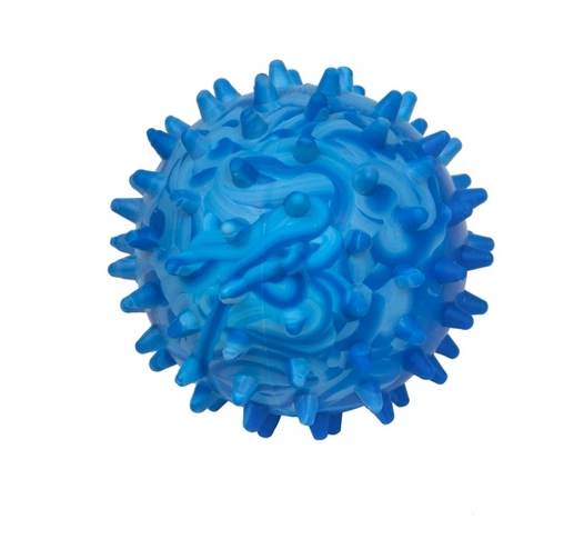 Na zdjęciu przedstawiona została piłka z kolcami o średnicy 7,5cm, która będzie idealna do aportowania. Jej wystające kolce będą przyjemnie masowały dziąsła i dbały o higienę jamy ustnej.