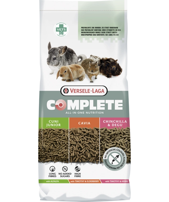 Cavia Complete - jest kompletną, pełnoporcjową, smaczną karmą dla świnek morskich. W 100% składającą się z łatwo strawnego, ekstrudowanego granulatu, który zawiera wszelkie potrzebne składniki pokarmowe w odpowiednich proporcjach i zapobiega selektywnemu pobieraniu pokarmu, a tym samym wyklucza jakiekolwiek niedobory w diecie.