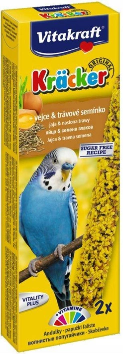 Vitakraft Kracker to trzykrotnie opieczona, smakowita kolba, umieszczona na drewnianym patyczku. Po skończonej uczcie patyczek można wykorzystać do ścierania przerostów dzioba.