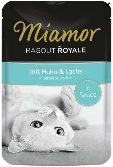 - Miamor wysokiej jakości mokra karma dla dorosłych kotów o smaku kurczaka i łososia w sosie