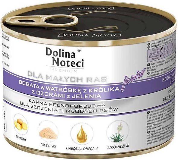 DOLINA NOTECI JUNIOR MAŁE RASY 185g WĄTRÓBKA Z KRÓLIKA I OZORY JELENIA