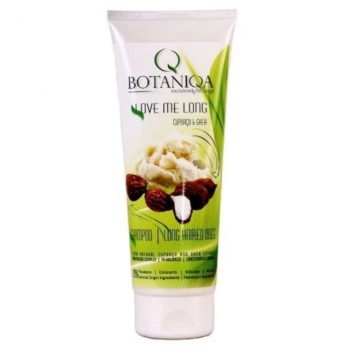 Botaniqa Love Me Long to szampon myjący, który wzmocni i odżywi sierść, dzięki swoim naturalnym, roślinnym składnikom. Wyciąg z Cupuaçu, drzewa pochodzącego z brazylijskiej Amazonii, regeneruje skórę wygładza i delikatnie natłuszcza sierść, nadając jej blasku. Ekstrakt z afrykańskiego drzewa Shea koi podrażnienia skóry, uzupełnia jej niedobory witaminowe i chroni sierść przed szkodliwym działaniem promieni słonecznych.