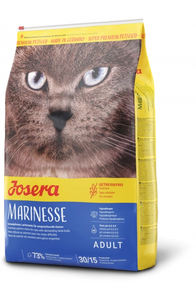 • Josera Marinesse- hipoalergiczna, bezzbożowa karma, idealna dla kotów cierpiących na nietolerancję pokarmową oraz z wrażliwym układem pokarmowym.