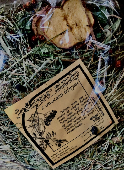 Jaśkowe sianko pochodzi z naturalnych łąk wzbogacone owocami leśnymi. Jest wyjątkowo aromatyczne i chętnie zjadane. Dodatkowo wzbogacone jest w mniszek lekarski, babkę, brzozę i nagietek co stanowi doskonałą dietę, urozmaica jadłospis. Sianko Jaśkowe znacząco poprawia samopoczucie i przybliża do naturalnych warunków naszych ulubieńców.