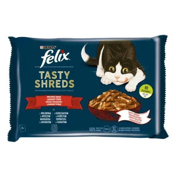 FELIX® Tasty Shreds – Wiejskie smaki z wołowiną i kurczakiem 4x85g