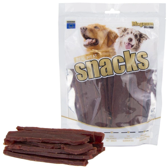 MAGNUM Lamb Filet to 100% naturalny przysmak z delikatnie mielonego mięsa jagnięcego, uformowany w szerokie, cienkie i elastyczne plasterki. Dzięki miękkiej konsystencji łatwo dzielą się na mniejsze porcje – idealne do treningu, nagradzania lub jako przekąska w podróży. Bez obciążania organizmu, dobrze przyswajalne i bezpieczne dla zębów.