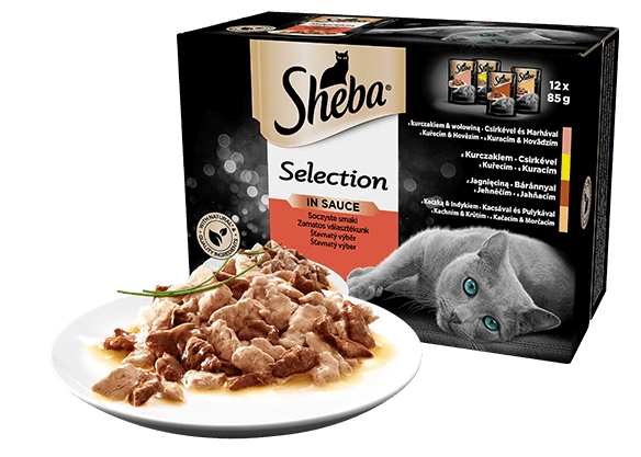 Pełnowartościowe, zbilansowane jedzenie dla kota Sheba Selection w Sosie to danie idealne dla dorosłego pupila. Przygotowane wyłącznie z wysokiej jakości składników sprawi, że Twój koci przyjaciel będzie mruczał o więcej. Kocia karma SHEBA® Selection w Sosie składa się z apetycznych, mięsistych kawałków zanurzonych w aksamitnym sosie. Zestaw zawiera 4 warianty smakowe: z kurczakiem i wołowiną, z kurczakiem, z jagnięciną oraz z kaczką i indykiem, w których rozsmakują się najwybredniejsze koty. Karma dla kota SHEBA® powstała według specjalnej receptury. Zawiera niezbędne substancje odżywcze – w tym witaminy i minerały pomagające utrzymać Twojego pupila w zdrowiu i dobrej kondycji. Ten wykwintny pokarm dla kota, dzięki niższej kaloryczności niż karma sucha, sprzyja utrzymaniu jego szczupłej sylwetki.