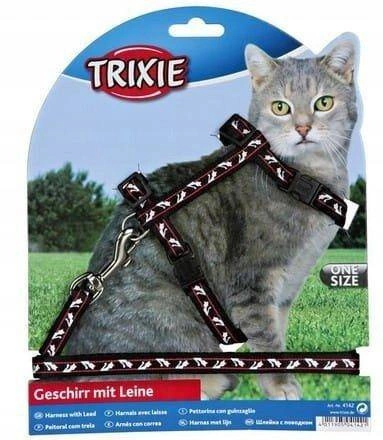 Szelki dla kota. Wykonane z elastycznego i miękkiego materiału, niedrażniącego skóry kota. Szelki posiadają regulację, dostosowującą ich wielkość do rozmiaru czworonoga. Plastikowe zatrzaski, pozwalają szybko i sprawnie zapiąć ulubieńca. Dołączona do szelek smycz stanowi atrakcyjny i urzekający wzorem i kolorystyką komplet. Regulowana smycz, zakończona jest karabińczykiem, pokrytym chromem, zabezpieczającym przed szkodliwym działaniem czynników atmosferycznych.