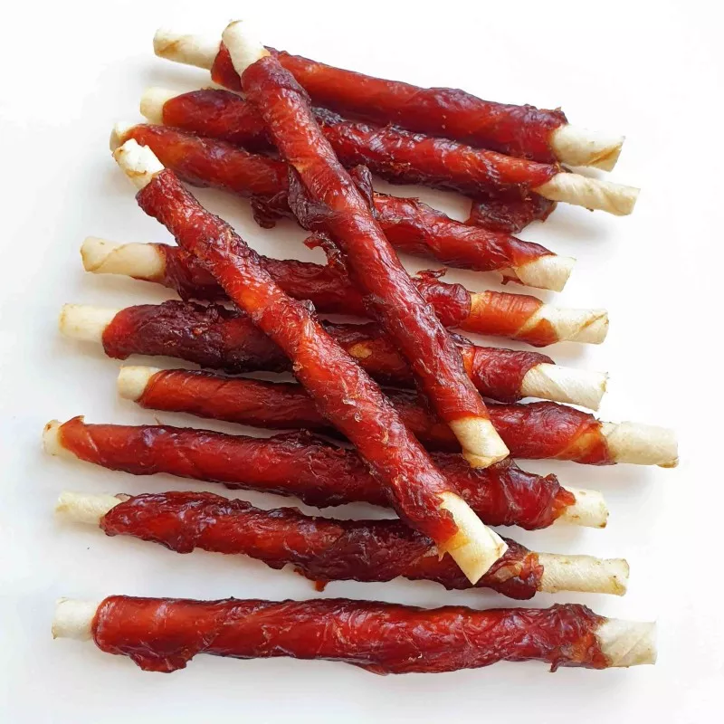 - Kręcone pałeczki dla psów owinięte soczystym mięsem z piersi kaczki, bezzbożowe, bez soi, pyszna radość z żucia, wzmocnienie żuchwy, zdrowy gryzak o długości 12cm