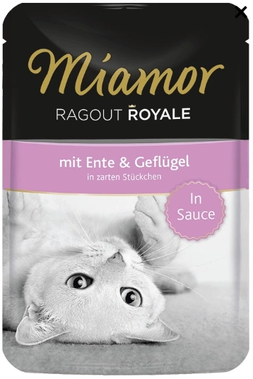 - Miamor wysokiej jakości mokra karma dla dorosłych kotów o smaku kaczki i kurczaka w sosie.