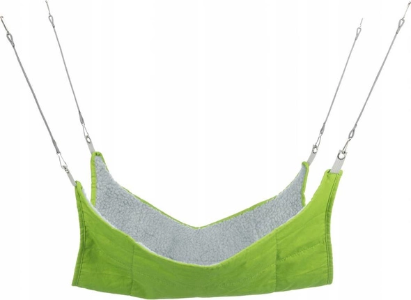 Hamak jest łatwy w utrzymaniu czystości, można go prać ręcznie w temperaturze 30o. Legowisko posiada uchwyty umożliwiające łatwy montaż w klatce.