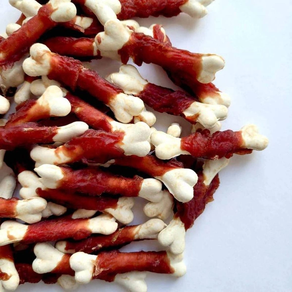 - dentystyczna przekąska dla psa w formie kości owiniętej mięsem z kaczki