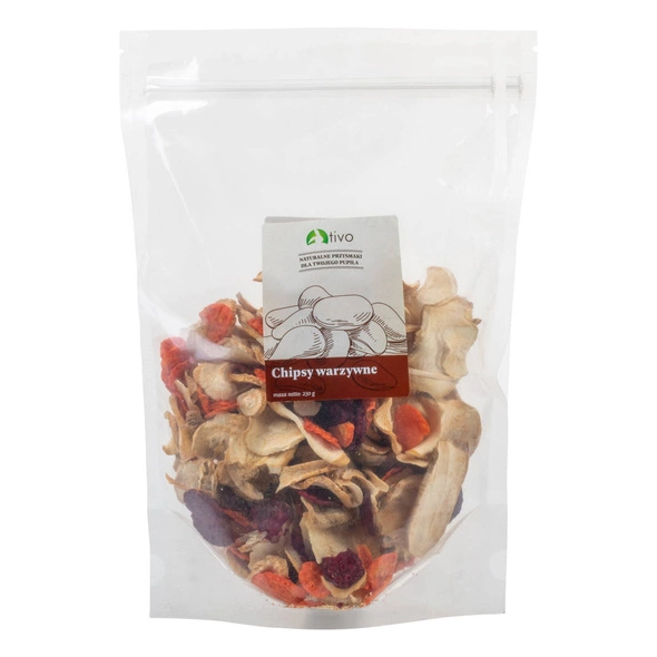 Fantastyczne połączenie pasternaka, marchewki, pietruszki oraz buraka w formie olbrzymich bardzo chrupiących chipsów w wielkiej 250 gramowej paczce. Nie oprą się nim największe uszate marudy. Jest to nie tylko pożywny dodatek do jadłospisu ale również gwarant świetnej zabawy i radości dla naszych pupili. Dodatkowo pomoże im w ścieraniu ząbków co jest dodatkowym atutem.