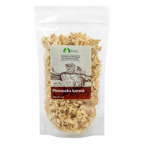 - Korzeń pietruszki pobudza wydzielanie śliny i soków żołądkowych, przez co ułatwia Twojemu pupilowi trawienie i przyswajanie pokarmu. Zawiera także dużą ilość wapnia, potasu i magnezu.