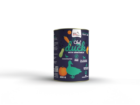 Kaczka z warzywami to zdrowa, smaczna i pełnoporcjowa karma mokra dla dorosłych psów, której skład został opracowany przez naszego specjalistę żywienia psów. Wybierając właśnie tę karmę możesz mieć pewność, że do organizmu Twojego pupila zostaną dostarczone wszystkie niezbędne składniki odżywcze, niezbędne witaminy i minerały.