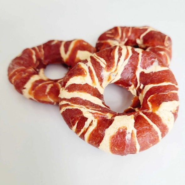 Naturalny gryzak dla psów w kształcie krążka ze zwiniętej skóry, otoczy mięsem z kaczki i półwilgotną chrząstką, bogatą w kolagen – doskonały jako zajmująca czas psia przekąska pomiędzy posiłkami. Przysmak do gryzienia i żucia pozwala psu rozładować stres i emocje, wspomagając jednocześnie higienę uzębienia. Naturalny aromat i smak mięsa zachęca i motywuje psa do intensywnego żucia, dając mu mnóstwo frajdy z jedzenia. Psie gryzaki Prozoo nie zawierają zbóż, cukrów, sztucznych dodatków, w tym barwników i aromatów.