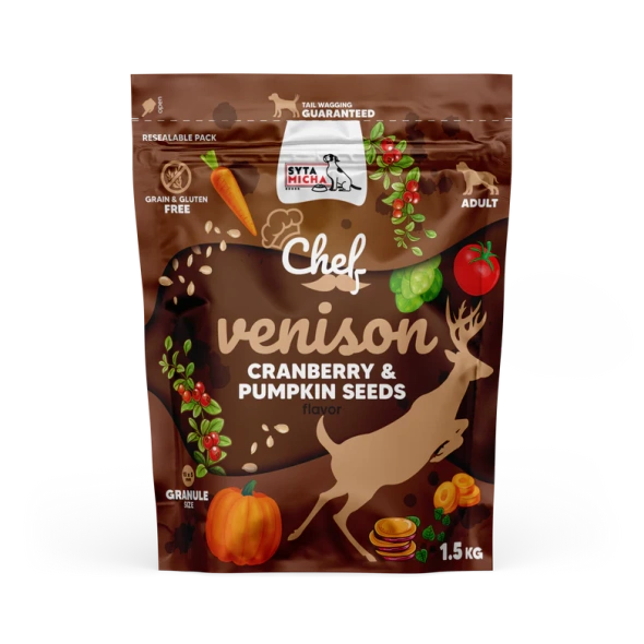 Nasza karma sucha dla dorosłych psów Syta Micha Dziczyzna, żurawina i pestki dyni to pełnoporcjowa dieta, która nie tylko zaspokaja apetyt pupila, ale przede wszystkim dba o jego zdrowie na najwyższym poziomie.