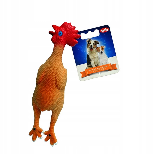 - Zabawka lateksowa w kształcie kurczaka z piszczałką dla małych psów.