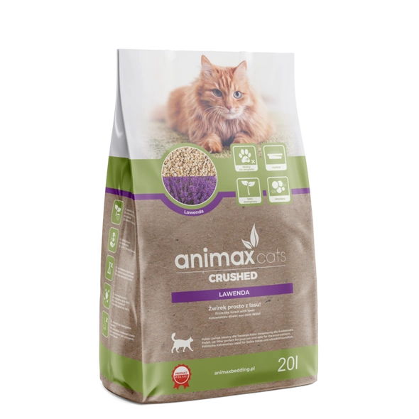 Animax Cats Crushed jest także jest wysokochłonny (wchłania nawet 4-krotnie więcej niż sama waży), całkowicie biodegradowalny i wniesie do Twojego domu delikatny zapach lawendy.