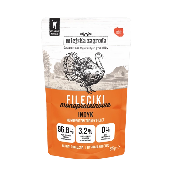 WIEJSKA ZAGRODA – KARMA MOKRA DLA KOTA – FILECIKI INDYK 85g