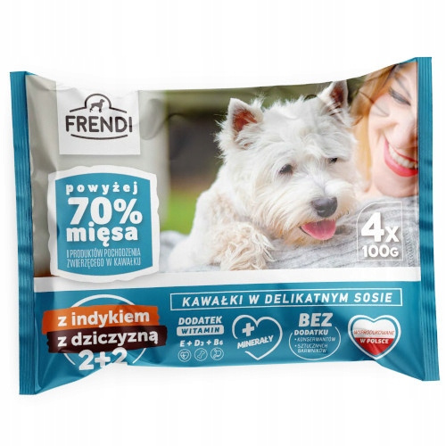Skład: 40% filet z kurczaka, 38,8% bulion, 10% kurczak (żołądek, wątroba, tłuszcz), 8% tuńczyk, 2% żurawina, 1% składniki mineralne, 0,2% olej z łososia