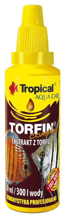 • Tropical Torfin Complex to ekstrakt z torfu wysokiego przeznaczony do przygotowania wody o jakości ułatwiającej hodowlę i rozmnażanie ryb ozdobnych