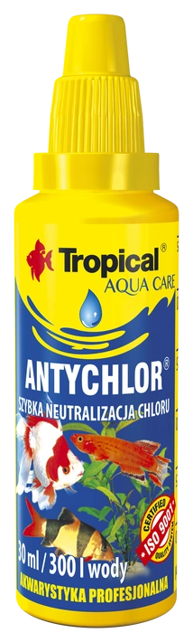 • Tropical Antychlor to preparat przeznaczony do szybkiego uzdatniania surowej wody wodociągowej używanej do celów akwarystycznych