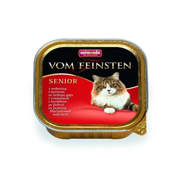 Twój kot wkroczył w dojrzały wiek? Zadbaj o jego zdrowie i dobre samopoczucie dzięki specjalnie opracowanej karmie Vom Feinsten Senior Wołowina. Ten pyszny, mięsny pasztet z drobnymi kawałkami został stworzony z myślą o kocich seniorach – lekkostrawny, bogaty w białko i idealnie dopasowany do zmieniających się potrzeb żywieniowych dorosłych kotów od 7. roku życia.