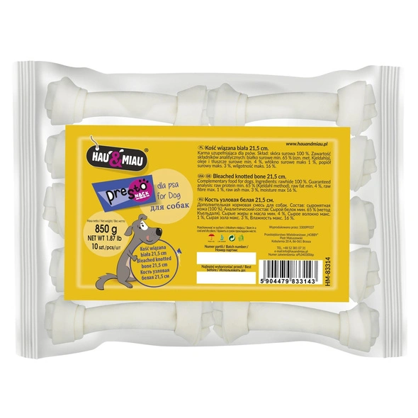 Zapewnij swojemu psu zdrową i smaczną zabawę dzięki kości wiązanej białej od marki Hau&Miau.