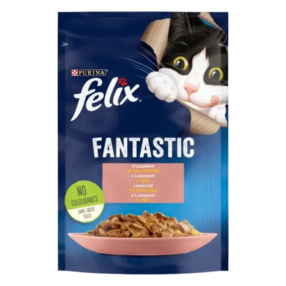 Felix Fantastic to pełnoporcjowa, zbilansowana karma mokra dla dorosłych kotów. Delikatne kawałki mięsa w soczystej galaretce z dodatkiem łososia to posiłek, który łączy wyśmienity smak z wartościami odżywczymi, wspierając codzienną energię i zdrowie pupila.