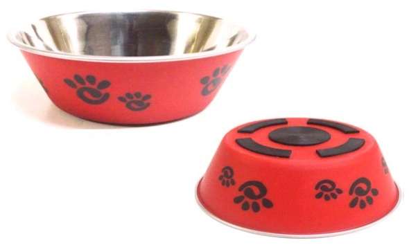 Yarro Miska metalowa pokryta plastikową warstwą z gumowym dnem, czerwona z łapką 21,5cm
