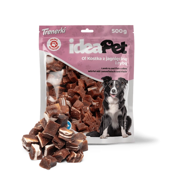 ideaPet Kostka z jagnięciną i rybą to smaczna i zdrowa przekąska, która zadowoli nawet najbardziej wymagające psy. Dzięki połączeniu mięsa jagnięcego i ryby, kostki oferują wyjątkową, bogatą w białko formułę, która wspiera zdrowie Twojego pupila. Jagnięcina to lekkostrawne, delikatne mięso, natomiast ryba dostarcza niezbędnych kwasów tłuszczowych omega-3, które wspomagają zdrowie skóry i sierści.