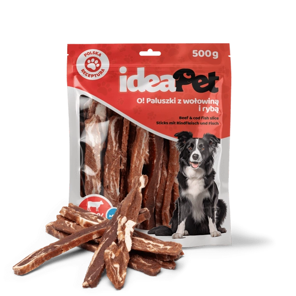 ideaPet Paluszki z wołowiną i rybą to pyszny przysmak dla psa, który łączy wołowinę, mięso z kaczki, dorsza oraz płuca wołowe, oferując wyjątkowy smak i wysoką wartość odżywczą. Wołowina i płuca wołowe dostarczają psu białka wspomagającego rozwój mięśni oraz regenerację tkanek, a mięso z kaczki jest lekkostrawne, pełne aminokwasów i minerałów. Dorsz, bogaty w kwasy omega-3, wpływa korzystnie na zdrowie skóry i sierści. Kształt paluszków sprawia, że są one łatwe do żucia, zapewniając psom długotrwałą przyjemność.