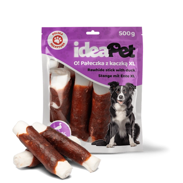 Przysmak IdeaPet Pałeczka z kaczką XL to pyszna, wysokobiałkowa przekąska dla psów, która łączy 60% skóry wołowej i 30% mięsa z kaczki. Skóra wołowa zapewnia długotrwałe żucie, pomagając utrzymać zdrowe zęby i zaspokajając naturalną potrzebę gryzienia, a mięso z kaczki dostarcza psu niezbędnych składników odżywczych. Kształt pałeczki sprawia, że jest idealna do długotrwałej zabawy i zapewnia psu radość z gryzienia.