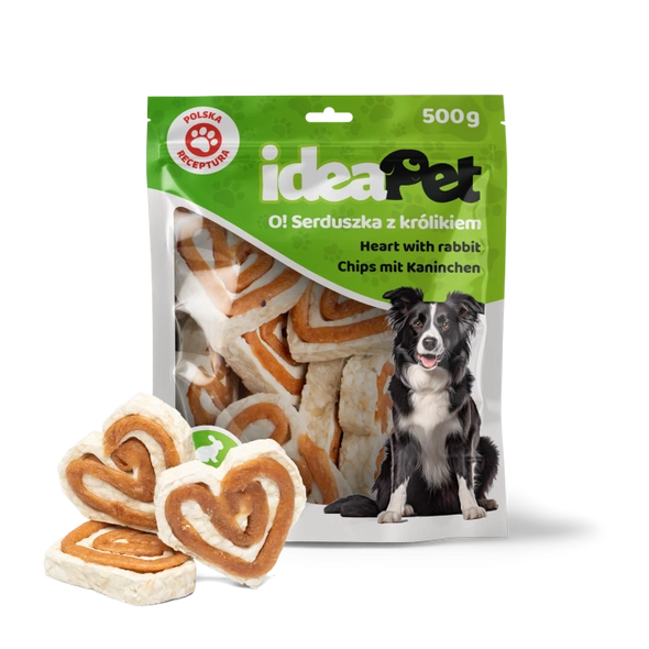 IdeaPet Serduszka z królikiem to smaczna i zdrowa przekąska w kształcie serduszek, łącząca skórę wołową (55%) i mięso z królika (20%), idealna do żucia. Skóra wołowa pełni rolę naturalnego gryzaka, pomagając w utrzymaniu higieny jamy ustnej, a mięso z królika jest lekkostrawne i delikatne, co sprawia, że jest idealnym wyborem dla psów z wrażliwym układem pokarmowym. Przysmak zawiera również składniki pochodzące z wołowiny, które wzbogacają go o dodatkowy smak i wartość odżywczą. To doskonała przekąska dla psów, które uwielbiają zdrowe i smaczne gryzaki.