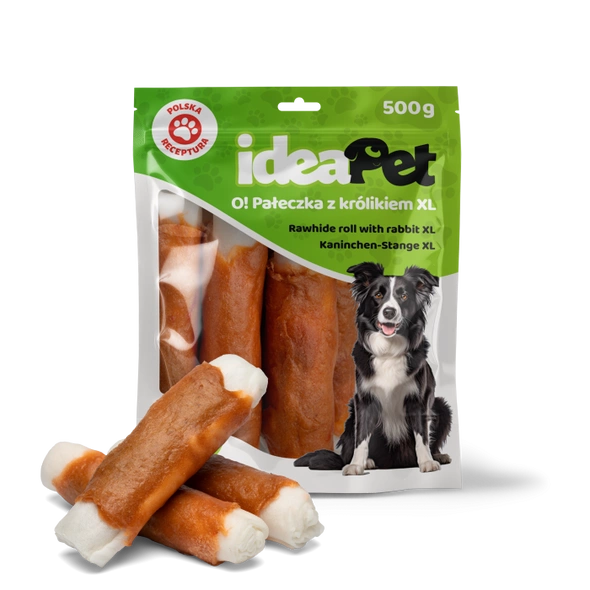 IdeaPet Pałeczka z królikiem XL to duża, smaczna przekąska w formie pałeczki, idealna do długotrwałego żucia. Skóra wołowa pełni rolę naturalnego gryzaka, pomagając w utrzymaniu higieny jamy ustnej, a mięso z królika dostarcza lekkostrawnego białka, odpowiedniego dla psów o wrażliwym układzie pokarmowym. Dodatkowo, przysmak zawiera płuca wołowe i mięso kacze, które wzbogacają go o smak i wartość odżywczą. To doskonały wybór dla psów, które uwielbiają gryzaki i potrzebują naturalnych składników w diecie.