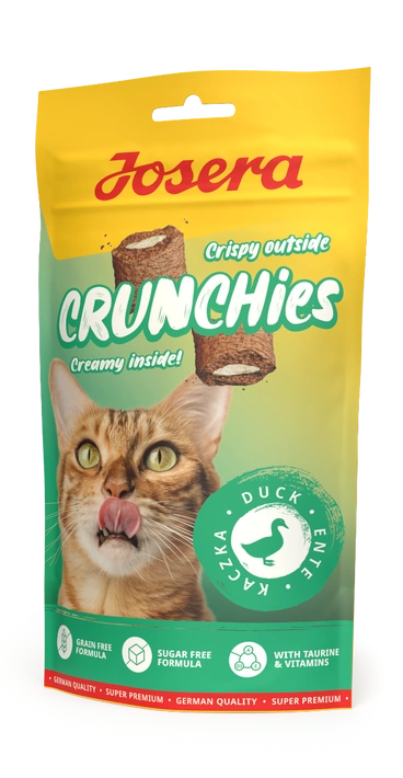 Nie martw się, ten odgłos to tylko nasze Josera Crunchies Duck, chrupane z rozkoszą przez Twojego kota! Te chrupiące z zewnątrz smakołyki mają kremowe nadzienie z pyszną kaczką, której trudno się oprzeć!