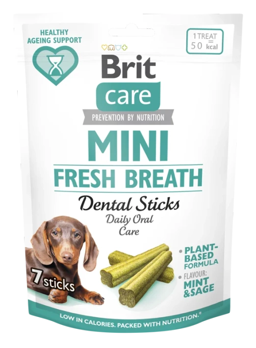 Brit Care Mini Dental Sticks Fresh Breath to wegetariańskie przysmaki, które wspierają redukcję płytki bakteryjnej oraz odświeżają oddech dzięki zawartości SHMP, mięty oraz kurkumy. Brit Care Mini Dental Sticks to nie tylko smakowita przekąska, ale też codzienne wsparcie zdrowia niewielkiego pupila. Starannie dobrane składniki mają za zadanie wspierać zwierzę w najczęstszych problemach zdrowotnych dotykających psów małych ras. Dostosowane są także do ich szybszego metabolizmu i delikatnych układów pokarmowych. W trosce o zachowanie jak najlepszej formy smakołyki mają niezwykle mało kalorii. Przysmaki są wegetariańskie i niskokaloryczne.