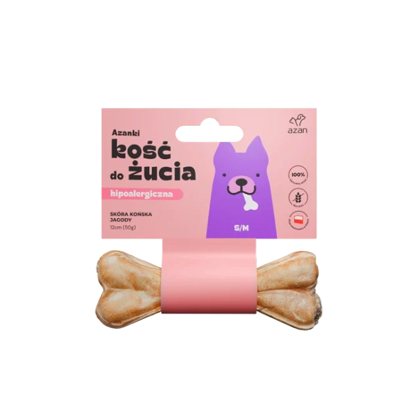Azanki Kość do żucia S/M ze skóry końskiej z jagodami to wyśmienity przysmak dla dorosłych psów małych i średnich ras, zaspokajający ich naturalną potrzebę gryzienia i żucia. Kości nie zawierają ostrych i kruchych elementów, stanowiąc bezpieczniejszą alternatywę dla rozmaitych gryzaków.
