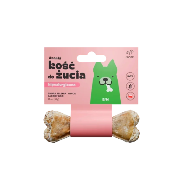 Azanki Kość do żucia S/M ze skóry jelenia z owcą i jagodami goji to wyśmienity przysmak dla dorosłych psów małych i średnich ras, zaspokajający ich naturalną potrzebę gryzienia i żucia. Kości nie zawierają ostrych i kruchych elementów, stanowiąc bezpieczniejszą alternatywę dla rozmaitych gryzaków.