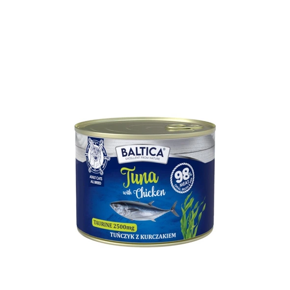 Baltica Excellent Tuna with Chicken to pełnoporcjowa, wysokomięsna karma mokra klasy premium, stworzona specjalnie dla dorosłych kotów, także tych o wrażliwym układzie pokarmowym lub potrzebujących diety eliminacyjnej.